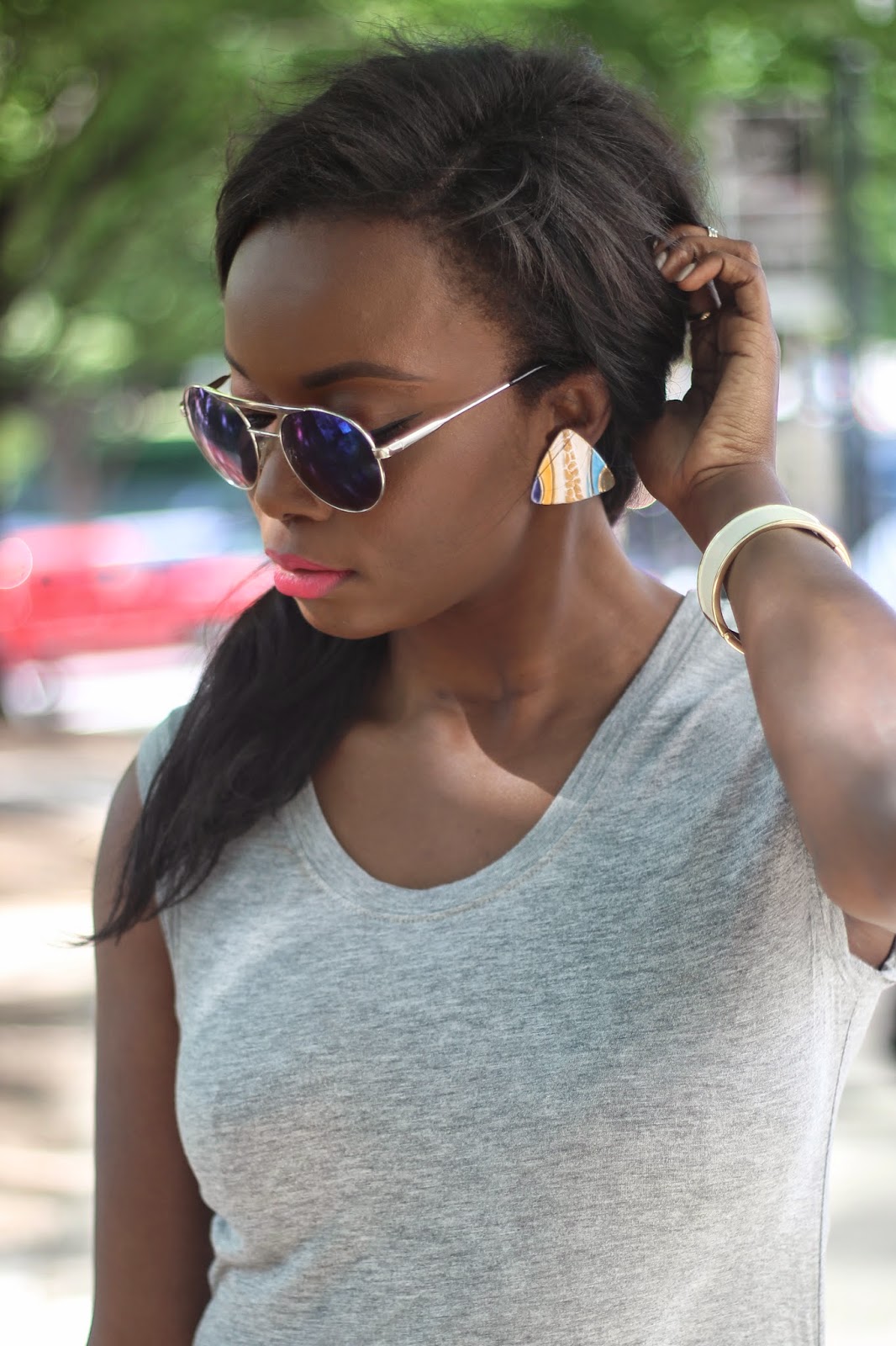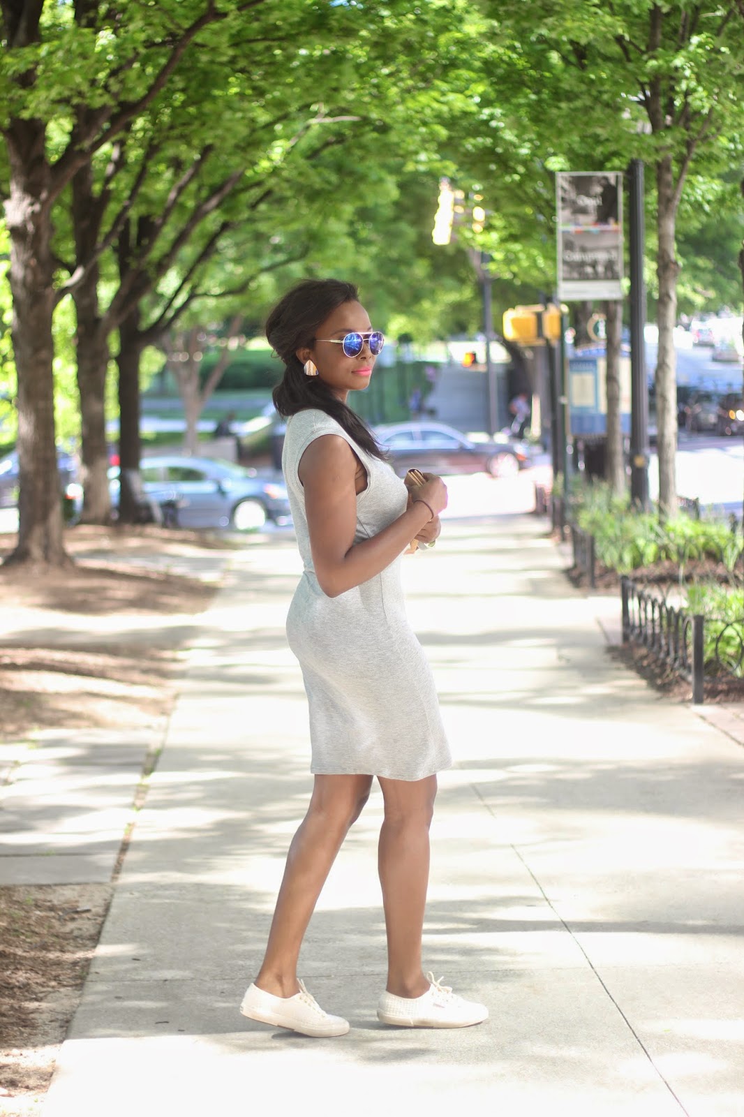 BCBGeneration georgie knit dress via LE TOTE |   Enamel cuff via LE TOTE | AJ Morgan sunglasses | Superga sneakers | Vintage earrings | MAC Cosmetics “Impassioned” lipstick | C Wonder cork wallet