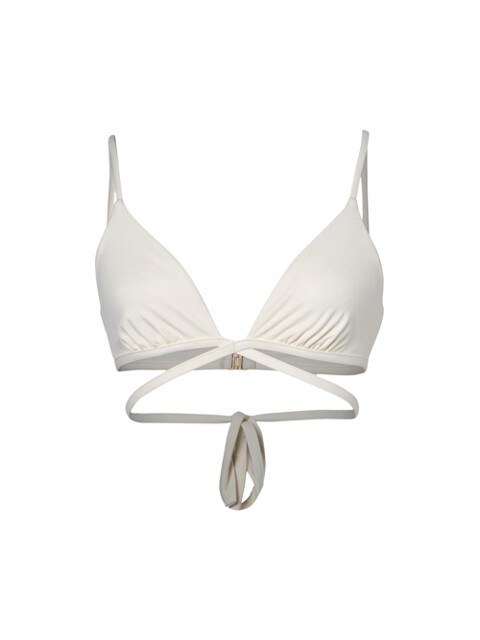 Relaxing at the beach all weekend? Sign me up for that! Summer whites are always a classic with this bikini set, and the cover-up and sunglasses add a fun aqua-toned pop of color to match the ocean waters. Top off your look with accessories, et voilà — a flawless look for a relaxing beach day!