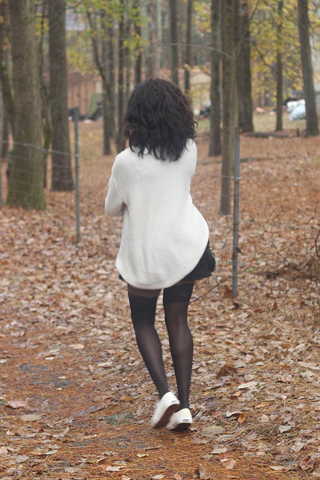I decided to take a risk with my outfit this by mixing textures and vamping it up with thigh-high tights… but I didn’t want to go overboard with the “sexy” factor, and since my Superga sneakers matched my sweater in both color and texture, they’re making another appearance on my blog today 🙂